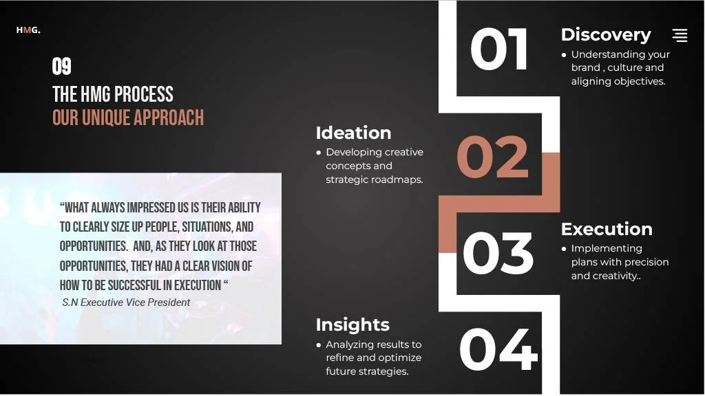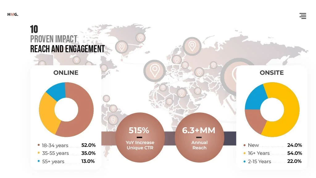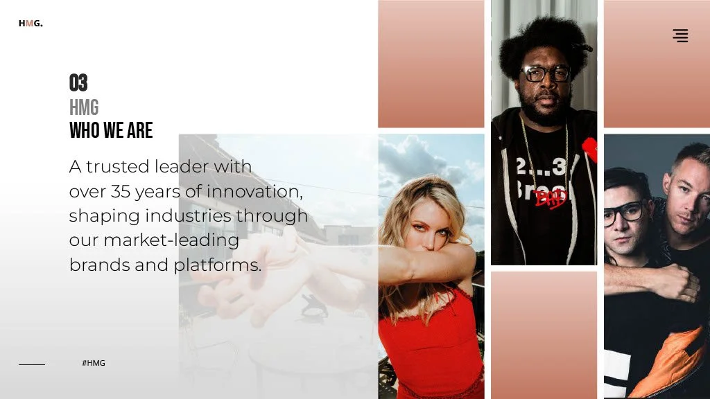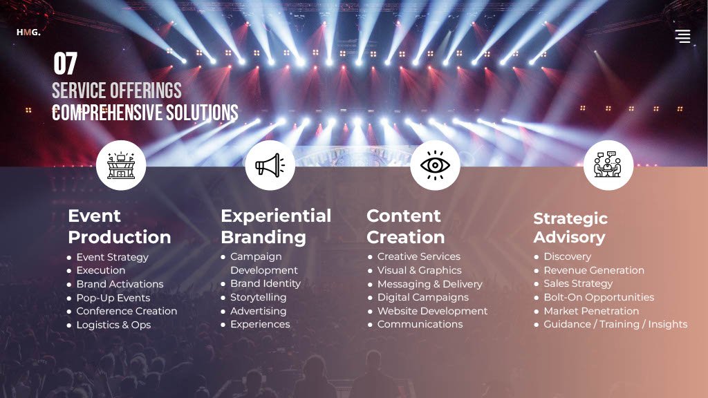 At HMG, we provide strategic solutions for our audiences by creating award-winning content, education, events and experiences integrating streaming, digital and in-person platforms.